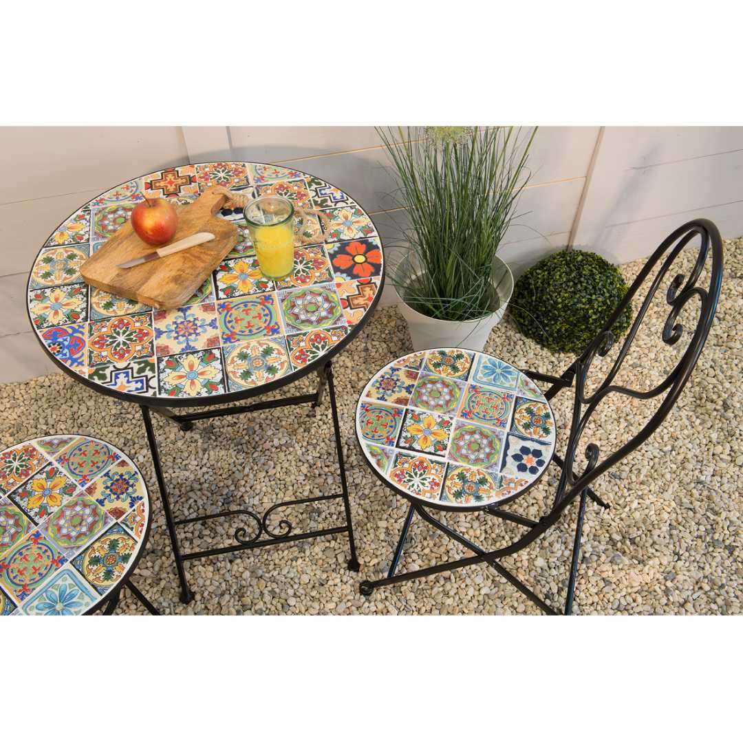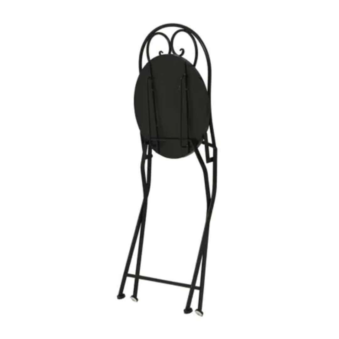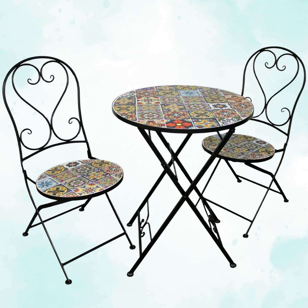 Featuring a sturdy metal frame with an elegant design, this set offers both durability and charm. The foldable chairs provide convenience and easy storage, making it ideal for small spaces.
