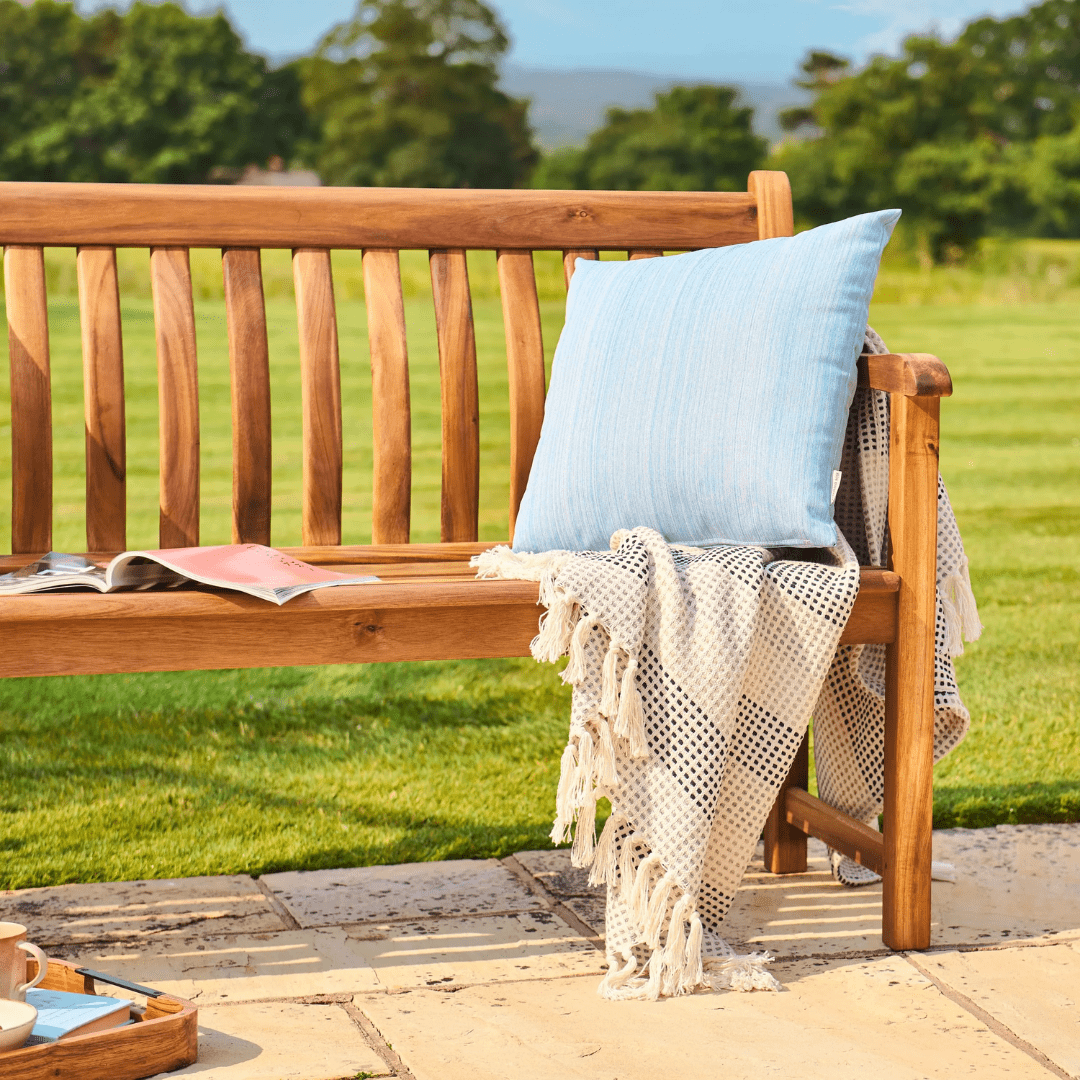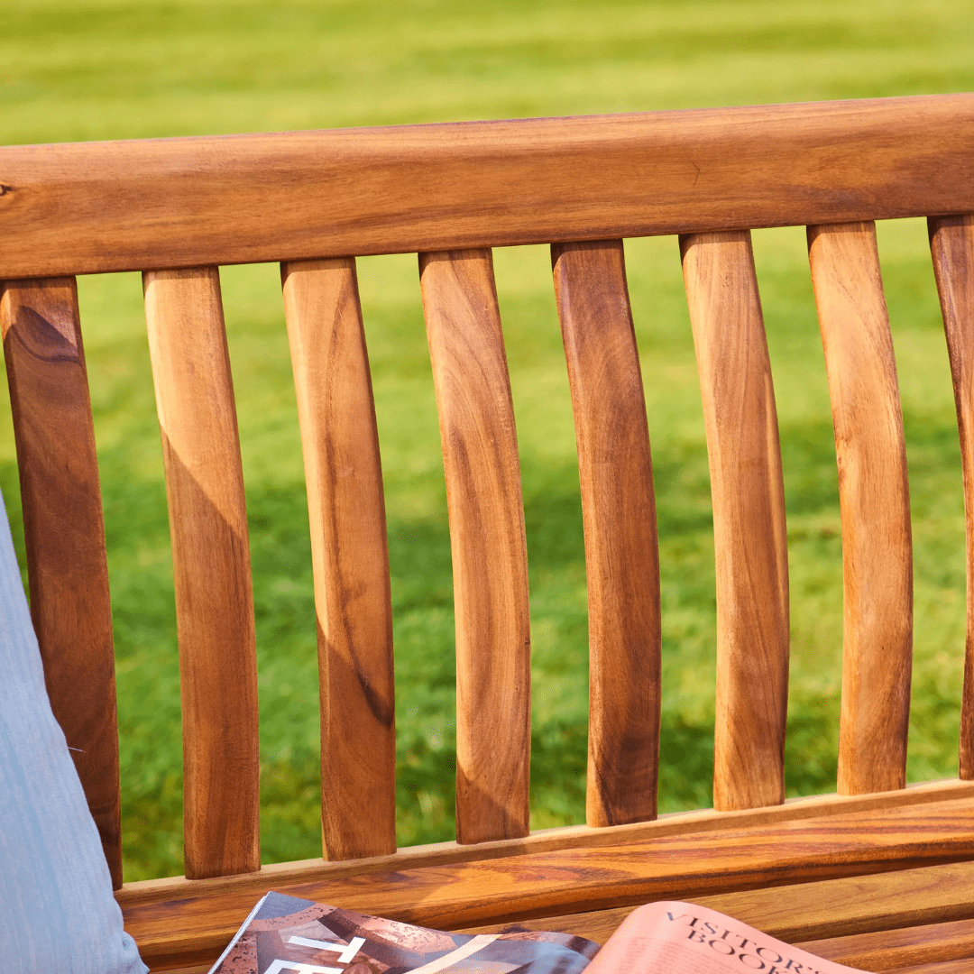 The timber has a smooth oiled finish, giving it a distinctive sheen and protecting it even further from the elements. The timber is sanded by hand to give a seamless finish.