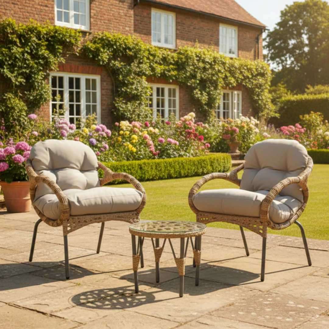 The Castel Bistro Set is perfect for relaxed outdoor moments, bringing comfort and contemporary style to patios, balconies and garden corners.