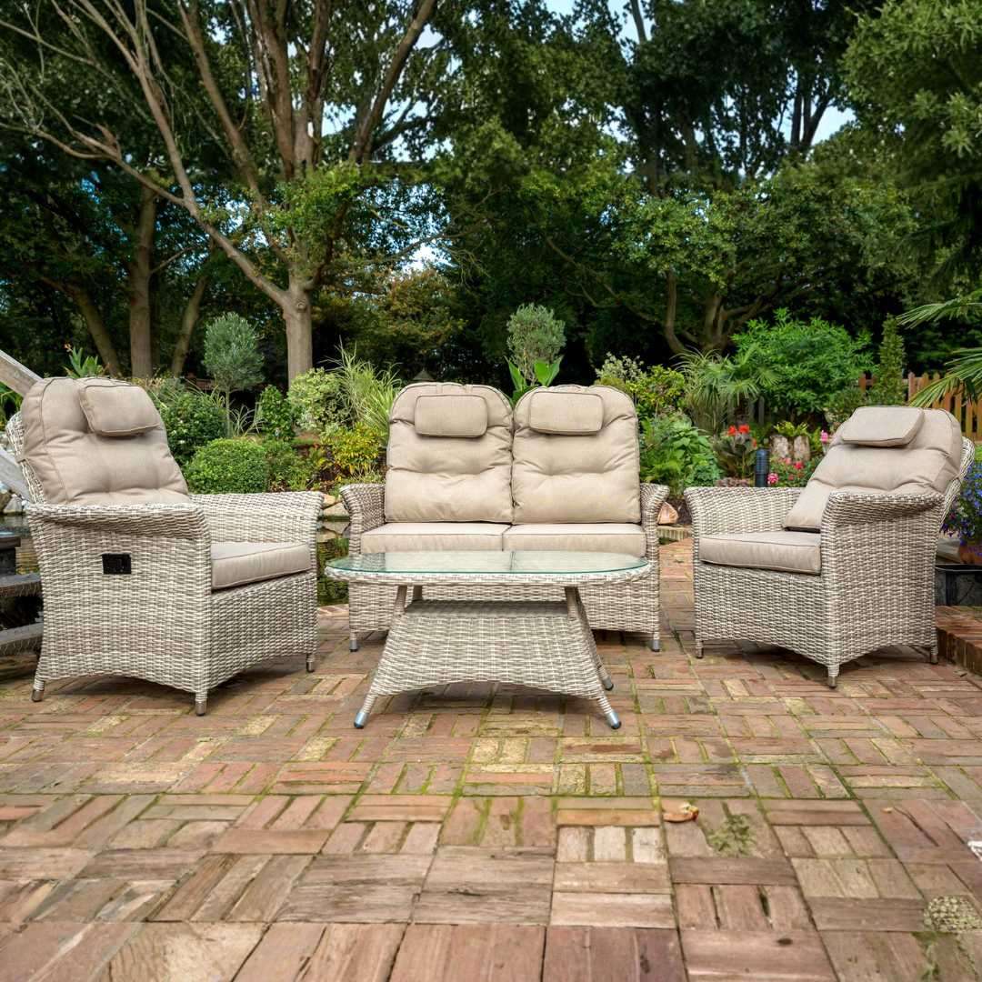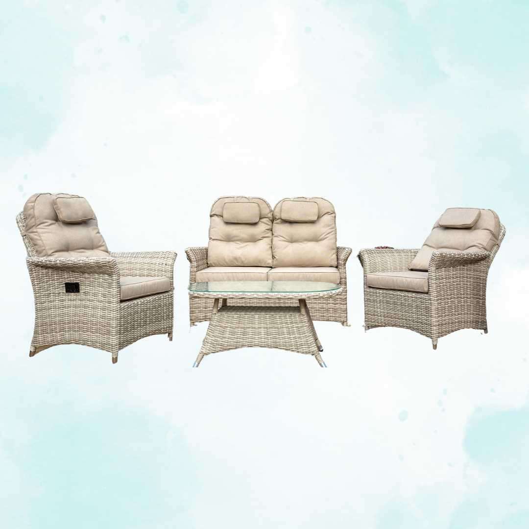 The Venice Reclining Sofa Set offers the perfect combination of luxury, comfort, and practicality for your outdoor space.